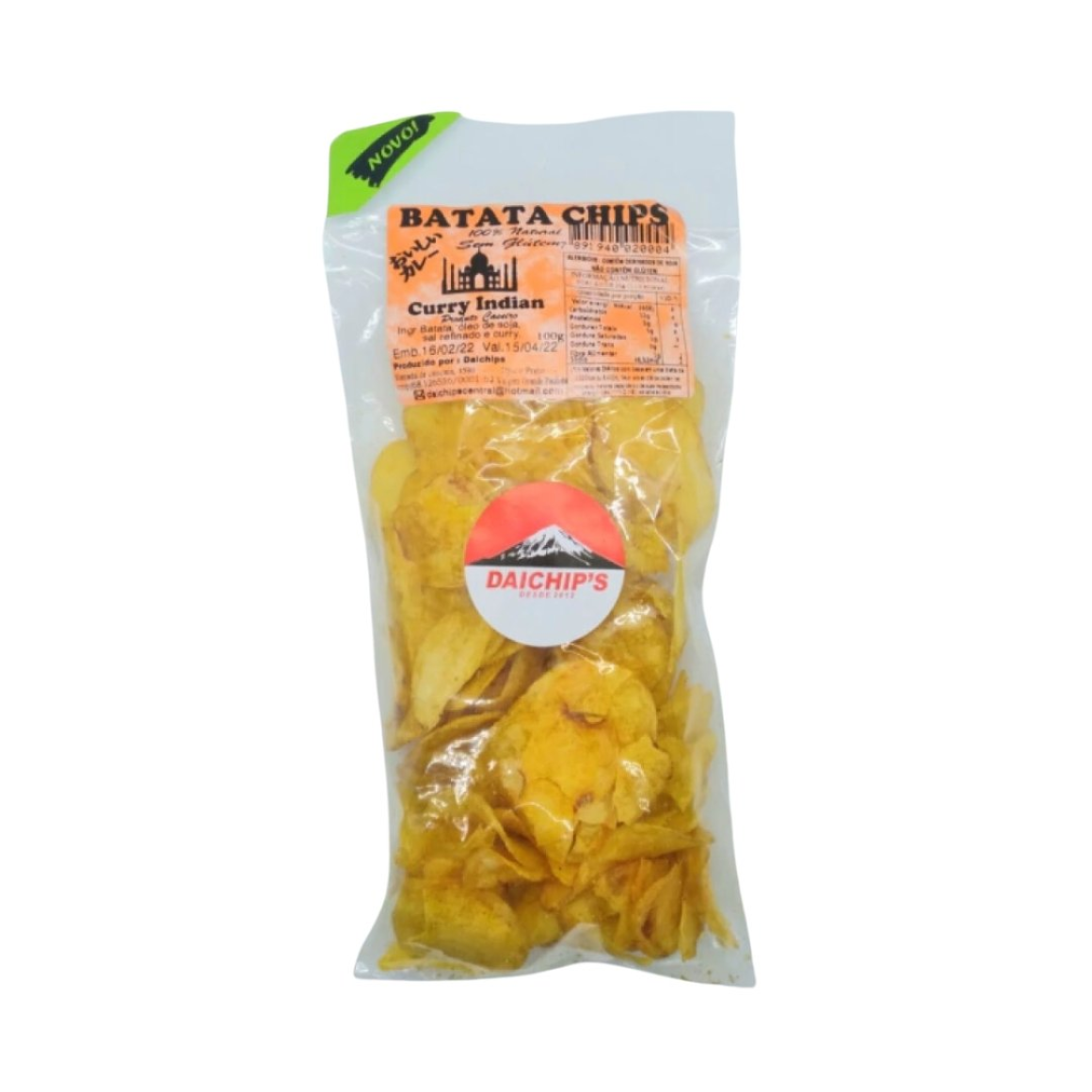 Batata Chips caseiro, sem conservantes, sem glútem, sabor curry