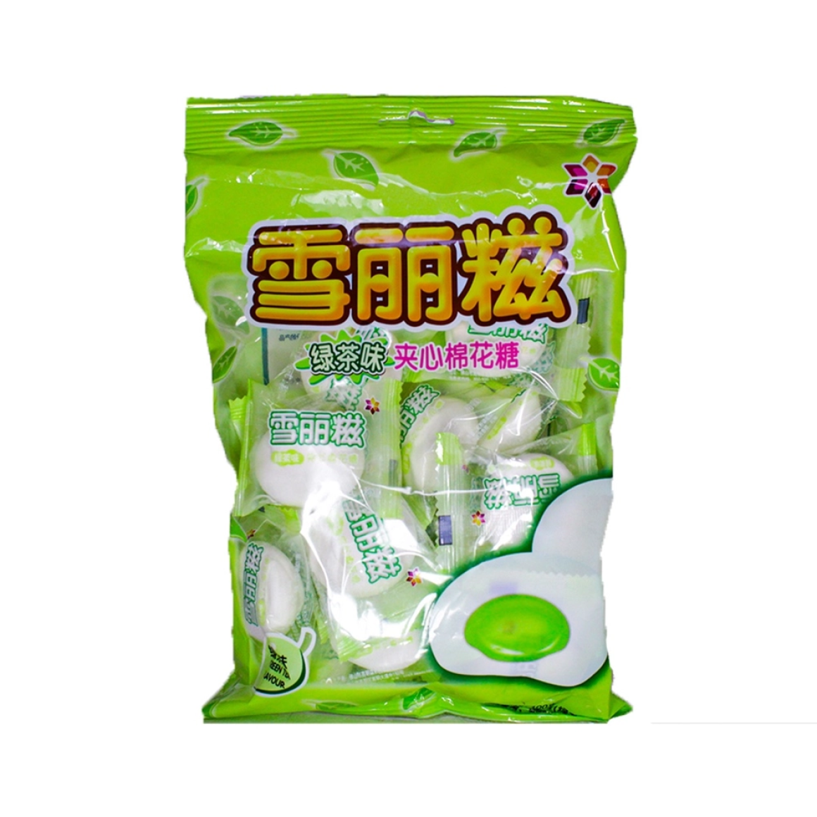 Delicioso doce pronto oriental marshmallow com recheio de cha verde, possui uma textura muito macia e um cheiro delicioso .